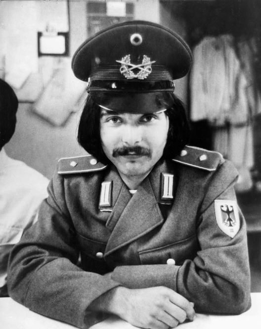 Mamnfred Grashof fotograferet i en "lånt" politiuniform i 1969